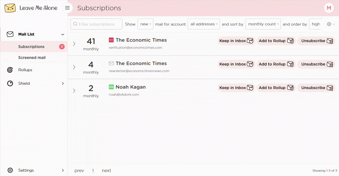 Leave Me Alone provides a far superior mailbox protection service along with a more advanced automatic unsubscribe feature. With Leave Me Alone, you can safeguard your inbox before emails even reach it by using email shields and shielded addresses. Additionally, you can implement smart blocklists and create personalized digests.
