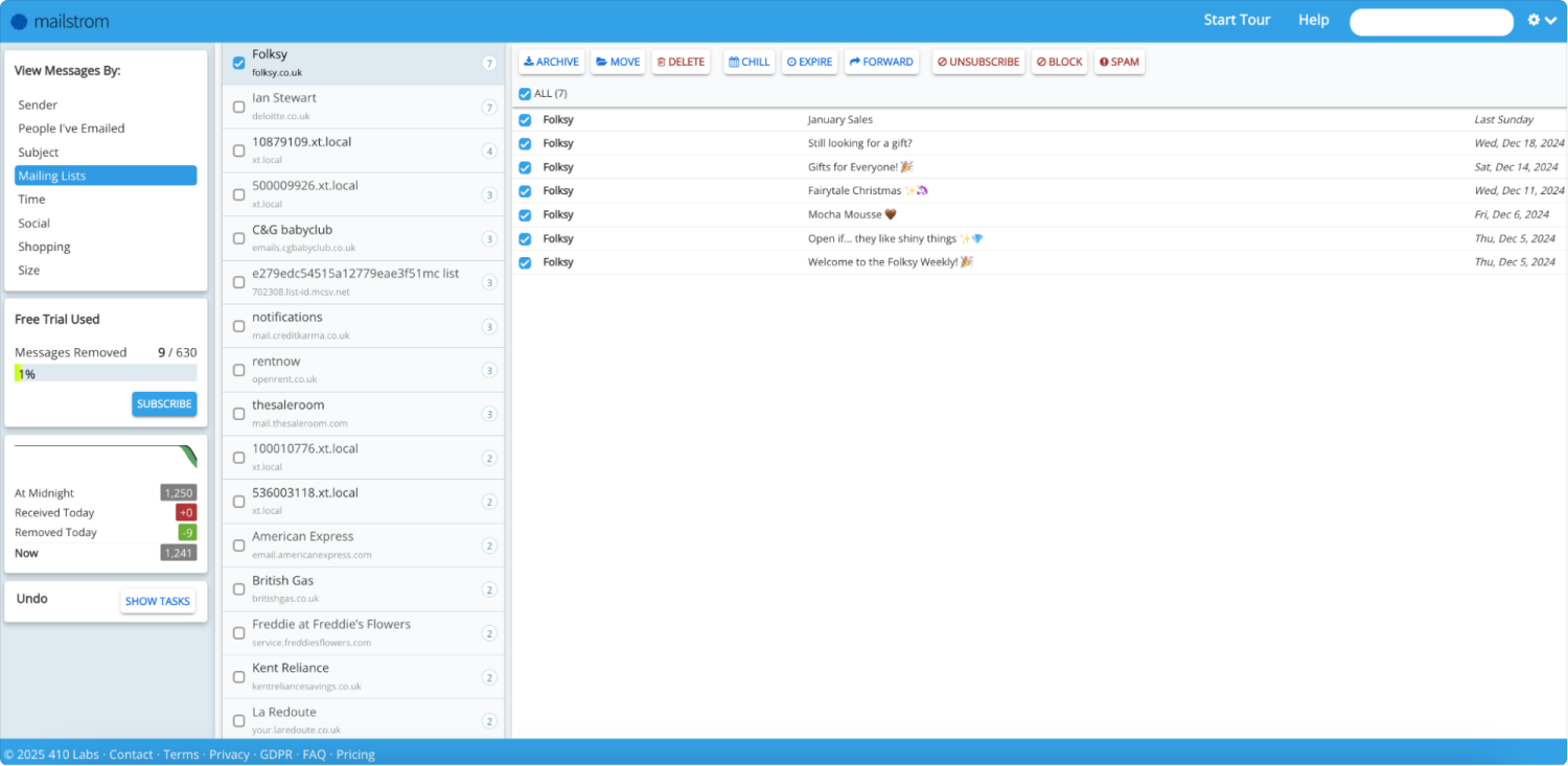 The good news is that Mailstrom does genuinely attempt to unsubscribe you, unlike some platforms that merely add filters to your inbox without removing you from the list. However, the downside is that Mailstrom often requires more user input than you might expect to ensure a successful unsubscribe.